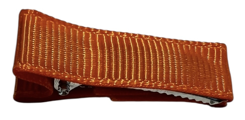 Alligator haarclipje 50x10 mm oranjeAlligator haarclipje 50x10 mm bekleed met ribslint, prijs per stuk.