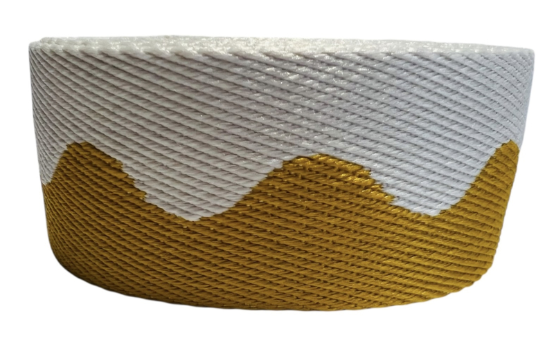 Tassenband golf offwhite/mosterd 38mm EXTRA STEVIG, per 0,5 meterTassenband golf offwhite/mosterd 38mm EXTRA STEVIG, per 0,5 meter.