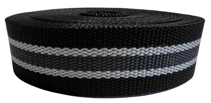 Tassenband zwart/lichtgrijs/antraciet 25mm STEVIG, per 0,5 meterTassenband zwart/lichtgrijs/antraciet 25mm STEVIG, per 0,5 meter. Materiaal Polypropyleen.