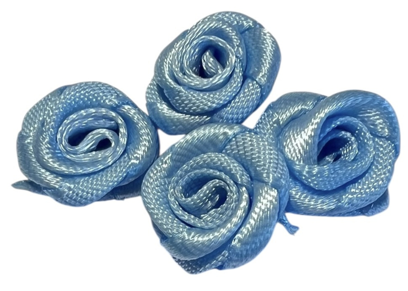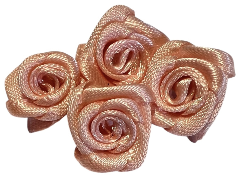 Kleine satijnen roosjes, met en zonder blad, voor het versieren van haaraccessoires of voor andere leuke DIY projecten.